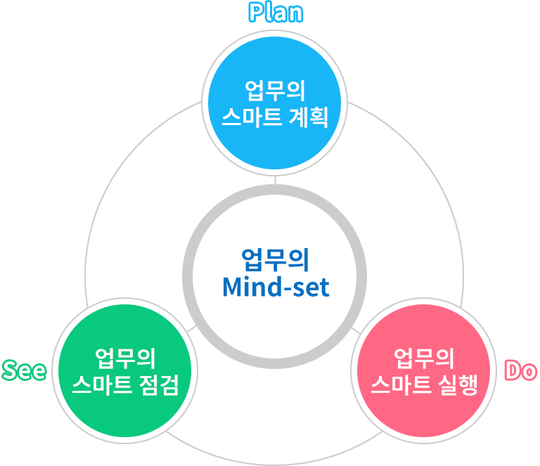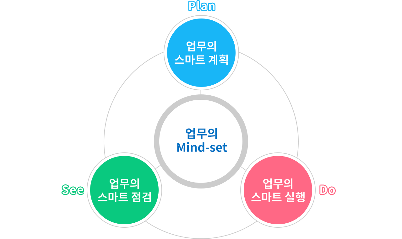 Smart 업무수행 과정은 업무의 인식을 새롭게 하고, 주어진 기한 내에 성공적으로 업무를 수행할 수 있도록 효율적 업무 기준을 정립시켜 드리는 과정 입니다.