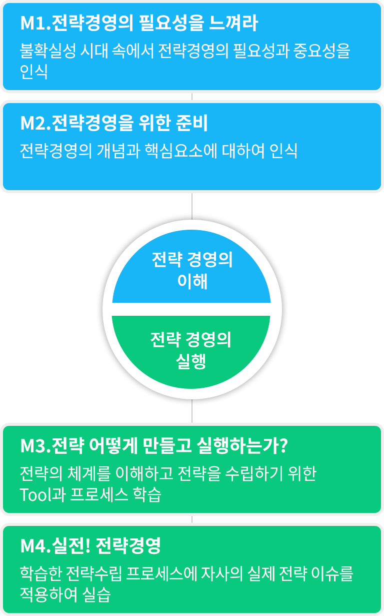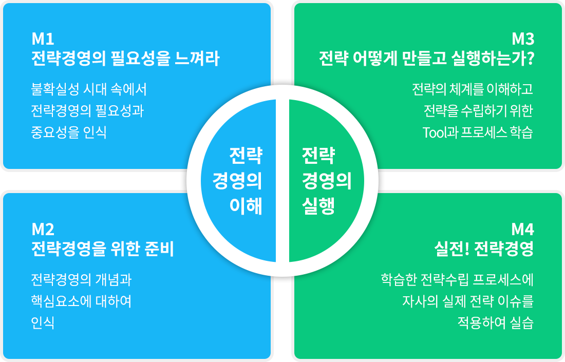 리더의 Insight! 전략경영 과정은 기업 경영에 대한 통찰력과 전략경영 능력 개발을 통하여 급변하는 환경에 대한 대응력을 강화하는 과정입니다.