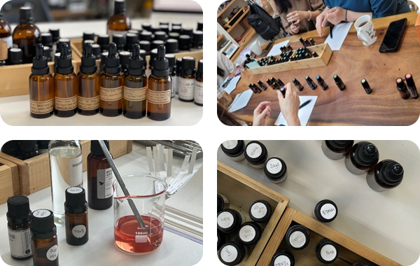 특징 : 에센셜오일을 체험하고 시향을 통해 감정 상태의 변화를 체험할 수 있으며 자신이 필요한, 자신에게 잘 맞는 나만의 향수를 만드는 프로그램입니다.