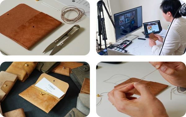 특징 : 제작은 바늘에 실 끼우기 부터 한땀한땀 새들스티치하기, 단면마감 들의 순서로 모든 과정을 수공예로 진행하는 프로그램입니다.